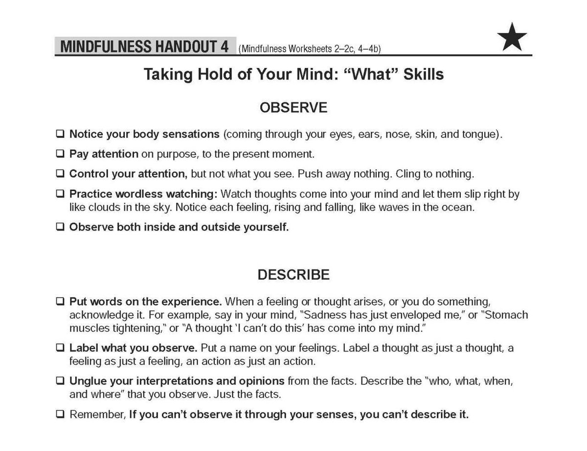 Web Mindfulness Often our minds get pulled in a whole bunch of different directions. Web Within DBT there are seven mindfulness skills which include the following. Web fom DBT kills Training Handouts and Worksheets econd Edition Marsh M linehan.